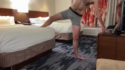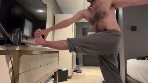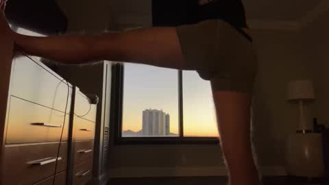 Tema de la sala: Las Vegas for a few days. Workout and Stretch, Love the view. Menu active, let’s have some fun. #fit #hairy #legs #underwear #softcock