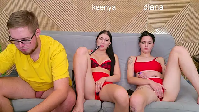 Tema de la sala: threesome sex + creampie