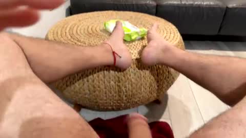 Tema de la sala: Mommy is sleeping and daddy is being sneaky...have to be careful . #cum #daddy #fatcock #feet