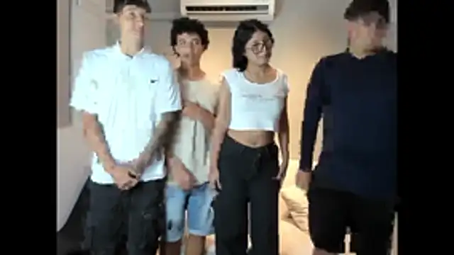 Tema de la sala: sexo rudo en grupo creampie al final
